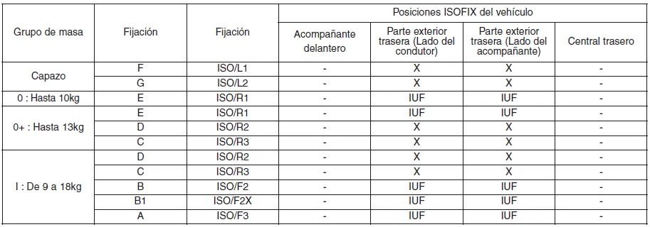 IUF = Adecuado para ISOFIX para los sistemas de seguridad para niños universales