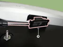 Desmonte el conjunto de la luz de la matrícula tras presionar el pasador de bloqueo (A).