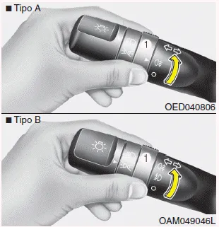 Las luces antiniebla se encenderán cuando el interruptor de las luces antiniebla traseras se encienda después de encender el interruptor de las luces antiniebla delanteras (opcional) y el interruptor de los faros esté en la posición de luces de estacionamiento.