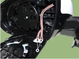 Desconecte el conectores del calefactor (A) del retrovisor.
