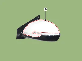 Desmonte la cubierta del retrovisor de la puerta (A) tras separar los pasadores de montaje.
