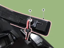 Procedimientos de reparación Extracción Tercera luz de freno (Exterior) 1. Desconecte el terminal negativo (-) de la batería. 2. Retire el piloto trasero (A) tras aflojar los tornillos de montaje.