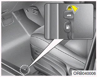 Su vehículo dispone de un cable de apertura de emergencia del maletero situado en el interior. Si se encierra a alguien sin darse cuenta en el maletero, mueva el mango exterior en la dirección de la flecha lo que desactivará el mecanismo de anclaje del maletero y abrirá el maletero.
