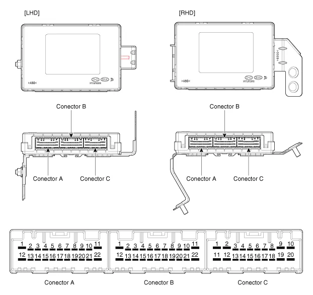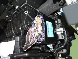 Desmonte el módulo de control de la carrocería (B) tras desconectar el conectores (A).