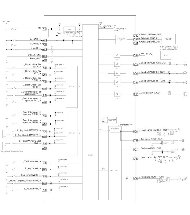 Si el valor del sensor de luz automática es inferior a la condición de piloto trasero ON (0,4 V) en el modo ACC ON, la salida del piloto trasero AV se enciende tras 1 segundo.