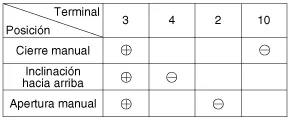 Conecte los terminales a tierra como en la tabla siguiente y compruebe que la unidad del techo solar funcione como se especifica.
