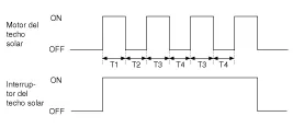 Para proteger al motor sobrecalentado del techo solar debido a un funcionamiento continuado, la ECU del techo solar controla el tiempo de funcionamiento y de enfriamiento del motor tal y como sigue;