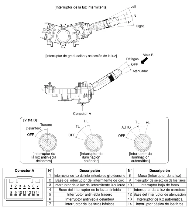 (Interruptor de la luz de intermitente / Conmutador de luces de cruce y carretera)