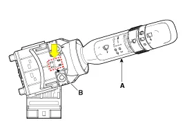 Retire el interruptor del limpiaparabrisas / del lavaparabrisas (A) presionando el pasador de bloqueo (B).