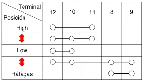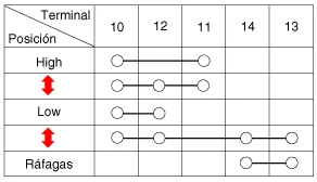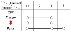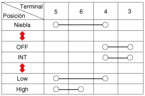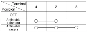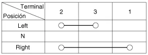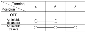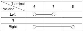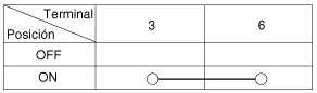 Compruebe la continuidad entre los terminales y cada posición del interruptor como se indica abajo.