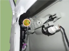 Desconecte el conector del pestillo de la puerta delantera (A).