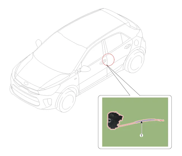 Componentes y localización de los componentes LOCALIZACIÓN DE LOS COMPONENTES 1. Manilla exterior de la puerta delantera Procedimientos de reparación Sustitución Póngase guantes para proteger sus manos.