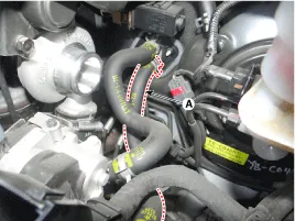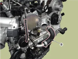 Desconecte la manguera del refrigerador EGR (A) y la manguera de vacío (B).