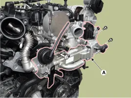 Desmonte el tubo de salida del refrigerador EGR (A).