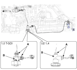 Desmonte el ECM. D 1,4 U2 TCI (Consulte "Control del motor / Sistema de combustible : Módulo de control del motor (ECM)") G 1,0 T-GDI (Consulte "Control del motor / Sistema de combustible : Módulo de control del motor (ECM)") |