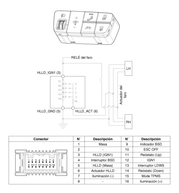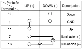 Procedimientos de reparación Inspección 1. Compruebe la continuidad entre los terminales. Si la continuidad no es la especificada, cambie le interruptor de la luz de emergencia.