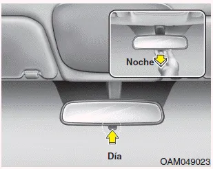 Tire hacia usted de la palanca día/noche para reducir el deslumbramiento producido por los faros de los vehículos que circulan por detrás del suyo por la noche.