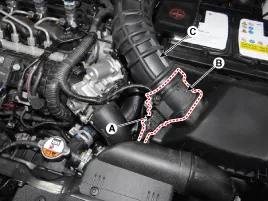 Desconecte el conector del sensor de temperatura del aire de admisión (A) y la abrazadera de la instalación. |