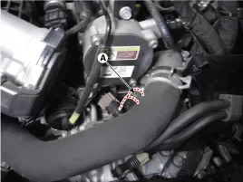 Desconecte el conector de sensor de temperatura del refrigerante del motor (A).