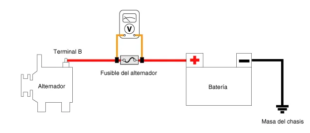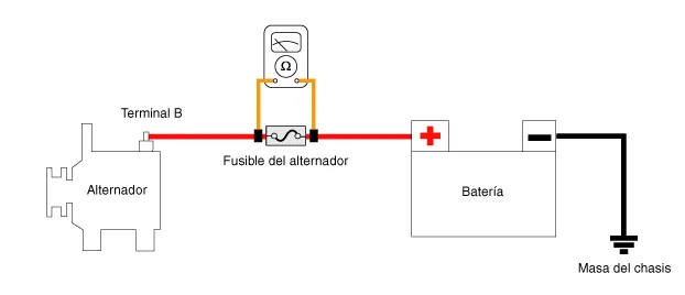 Compruebe la continuidad del fusible del alternador.