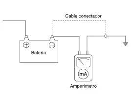Conecte el amperímetro en serie entre el terminal de la batería (-) y