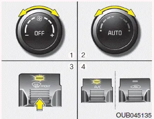 Para desempañar la cara interior del parabrisas 1. Seleccione cualquier velocidad del ventilador excepto la posición 0. 2. Seleccione la temperatura deseada.