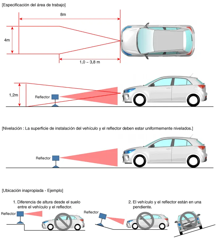 Si el procedimiento de alineación del sensor no se realiza en las condiciones arriba mencionadas, el sistema del control de crucero inteligente podría no funcionar correctamente.