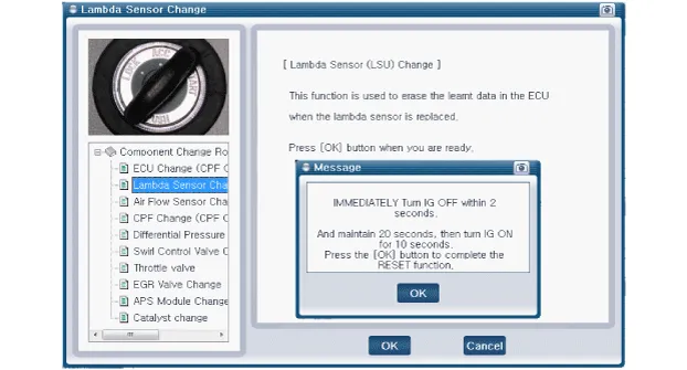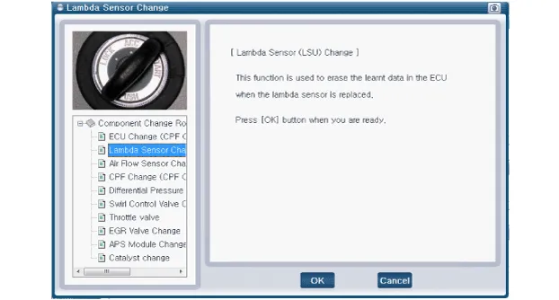 Seleccione el "CAMBIO DEL SENSOR LAMBDA"