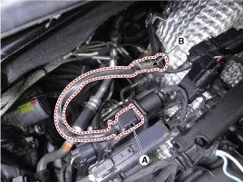 Características técnicas Especificación Temperatura (°C [°F]) Resistencia (kΩ) -30 (-22) 27,00 -20 (-4) 15,67 -10 (14) 9,45 0 (32) 5,89 20 (68) 2,27 ~ 2,73 40 (104) 1,17 50 (122) 0,83 60 (140) 0,60 70 (158) 0,43 80 (176) 0,30 ~ 0,32 85 (185) 0,269 90 (194) 0,231 95 (203) 0,205 100 (212) 0,176 105 (221) 0,158 110 (230) 0,137 120 (248) 0,112 130 (266) 0,088 Descripción y operación Descripción El Sensor de Temperatura de Combustible (FTS) está montado en la línea de suministro de combustible y detecta la temperatura de combustible suministrado a la bomba de alta presión.