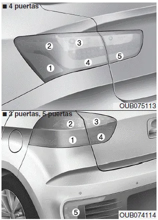 La luz antiniebla trasera está solamente en el sido del conductor. (3 puertas, 5 puertas, opcional)