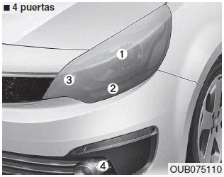 (4) Luz antiniebla delantera (opcional) o Luz dedicada (DRL) (Para Europa, opcional)