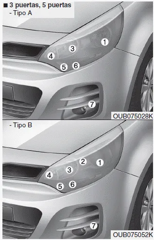 Intermitente de giro, las luces de posición y luz dedicada (DRL) (Para tipo de bombillas, opcional)