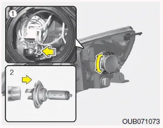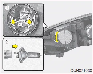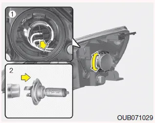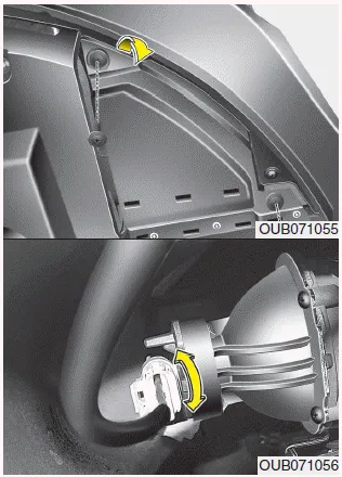 5. Retire la cubierta de la bombilla de los faros girándola en sentido antihorario.