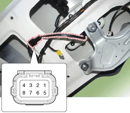 Conecte el conector del conjunto de la manilla exterior del portón trasero. |