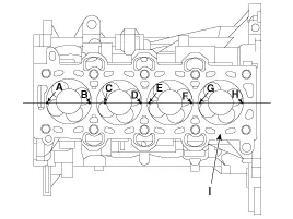 Compruebe la ausencia de grietas. Compruebe los puertos de admisión, los puertos de escape y la superficie del bloque de cilindros en busca de grietas. Si se observan grietas, cambie la culata. |