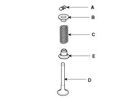 de leva 2. Taqué hidráulico (HLA) 3. Bloqueo del retenedor del muelle de la válvula 4. Retenedor del muelle de la válvula 5. Muelle de la válvula |