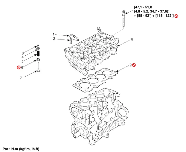 del vástago de la válvula 7. Válvula 8. Culata 9. Junta de la culata |