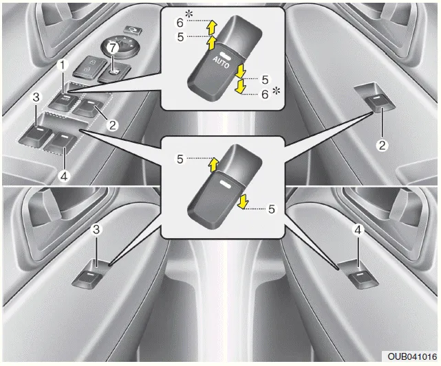 (6) Subida*/Bajada* del elevalunas automático (ventanilla del conductor)
