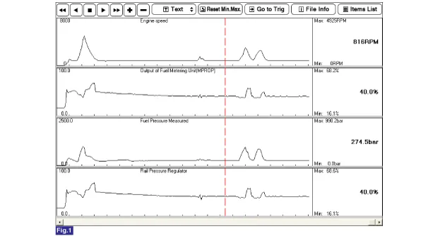 Fig.1) Forma de onda de la válvula del regulador de presión del combustible a ralentí.