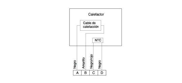 Medir la resistencia del NTC y del panel del calefactor. Resistencia NTC (Negro / Rojo, Negro) : 10,0kΩ ± 3% (a 23 - 27°C) Resistencia del panel superior (Amarillo) : 1,85 ± 0,2Ω (a 22°C ±1°C) |